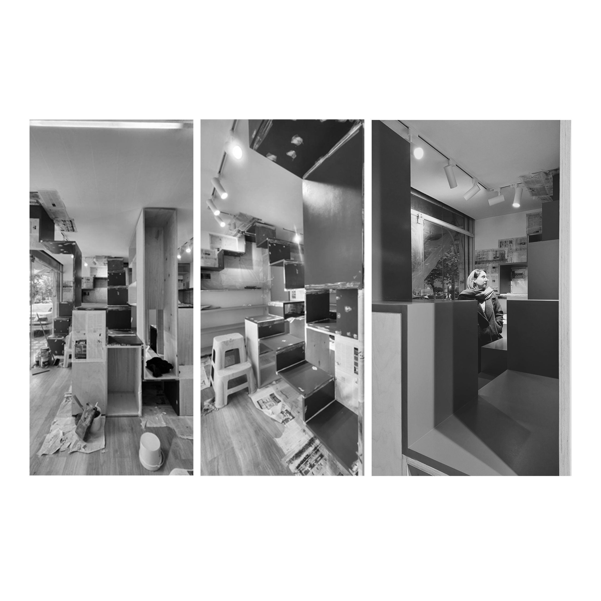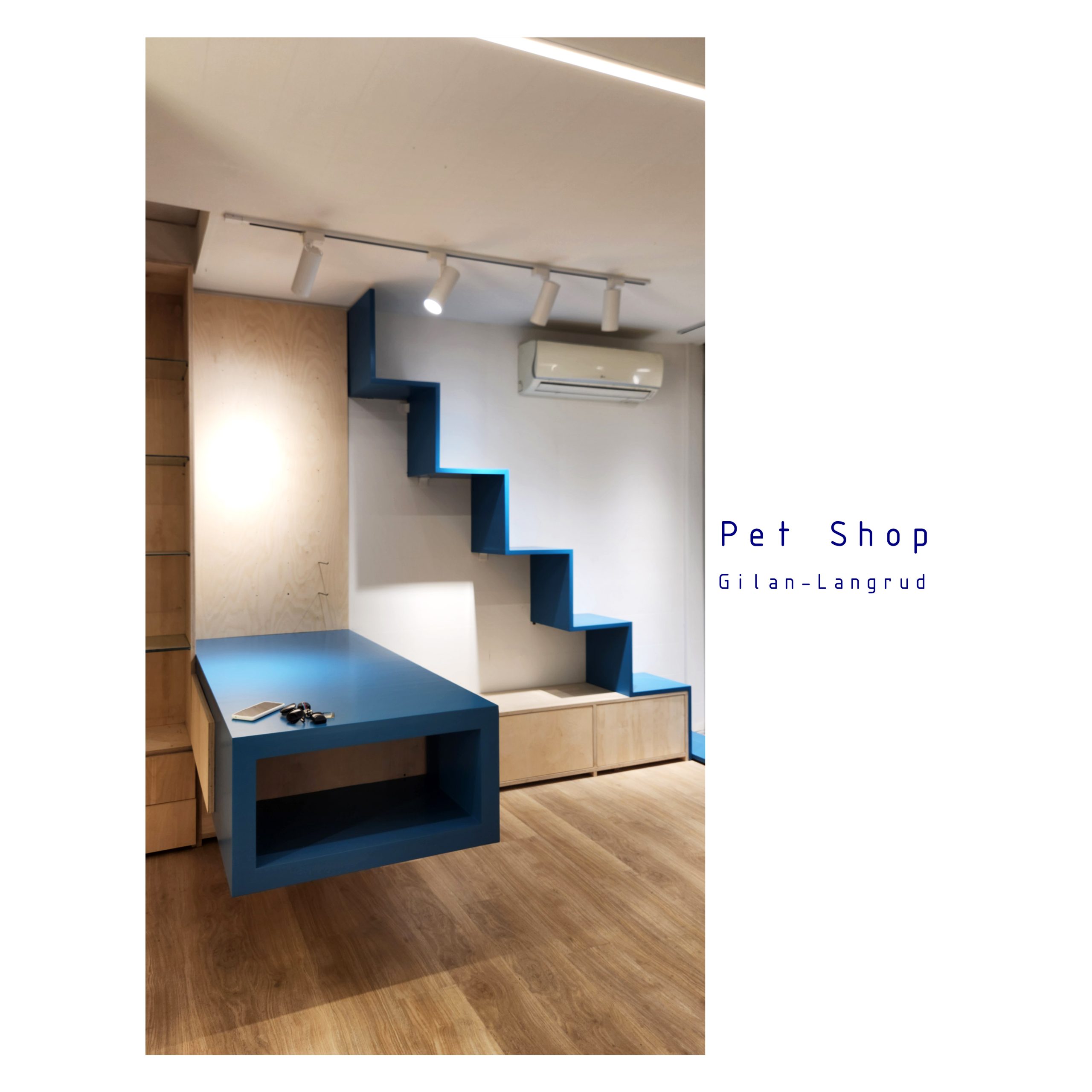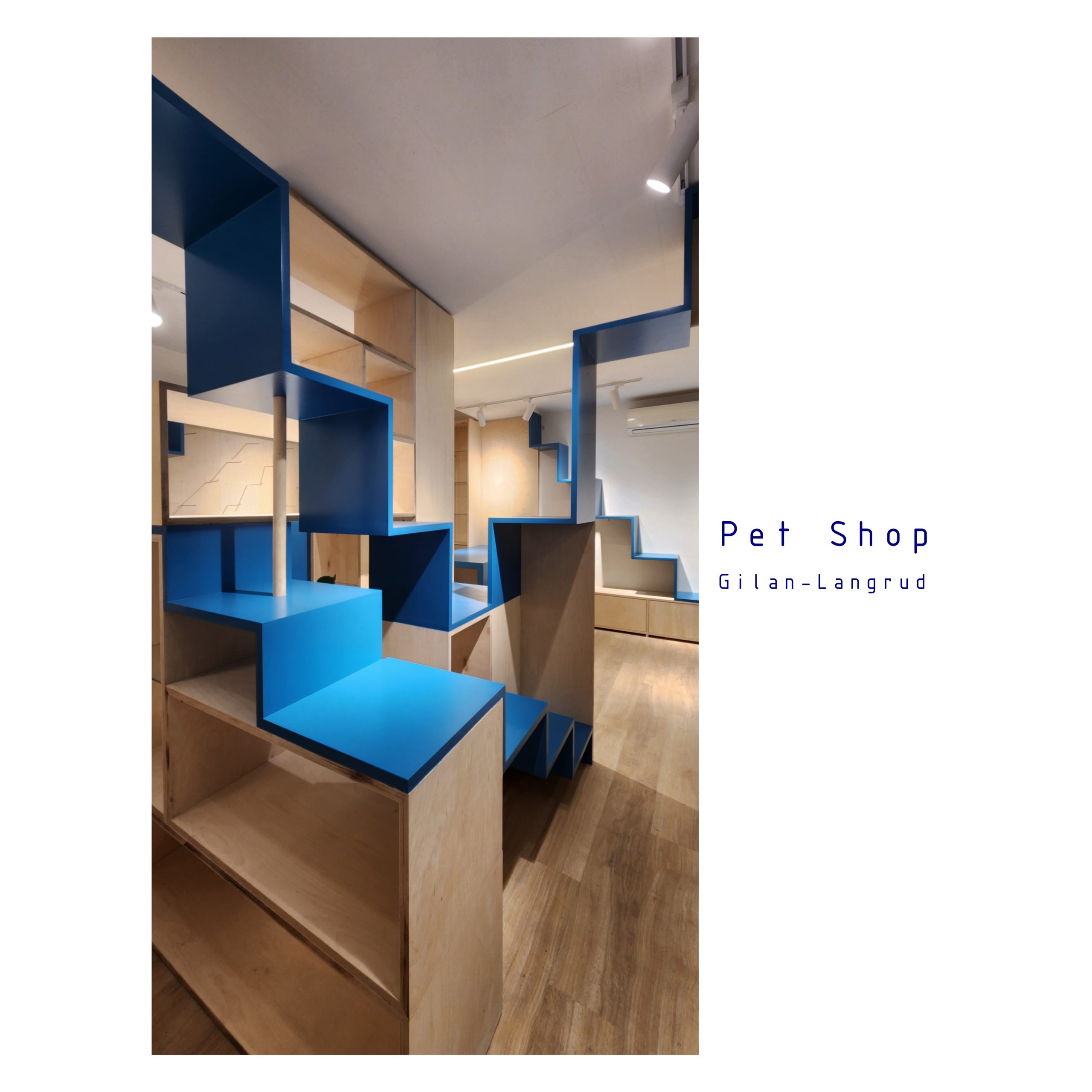 پت شاپ احترامی در برابر کاراکتر های اصلی درگیر پروژه است. سگ ها و گربه ها مخاطبین اصلی پروژه ما هستند که سعی کردیم روند طراحی را بر مبنای رفتار های ذاتی خودشان شکل دهیم گربه ها و سگ های خانگی عمدتا شخصیت های بازیگوش دارند و دائم درحال بازی و کند و کاو هستند و فضاهایی با اختلاف سطح و پر و خالی های متنوع برایشان جذابیت دارد از آنجایی که هدف فروشگاه تامین نیاز های پت های خانگی میباشد چیدمان فضا در راستای ایجاد کیفیت فضایی های متنوع شکل گرفت ، کلیت فضا در ابتدا از نیاز اولیه پت که الگوی باکس گونه ای از خانه های چوبی سگ ها و گربه ها هست شکل گرفت و در تمام نقاط فضا با توجه به نیاز های کارفرما و ایجاد فضاهای کاربردی جهت ارائه محصول جانمایی شد و متریال اصلی آن چوب خودرنگ به همان شکل ساده از خانه پت ها در نظر گرفته شد. پله ها اختلاف سطح ها را شکل دادند و باعث ایجاد جذابیت بصری و ایجاد پویایی و تحرک در کنار حجم های چوبی ایستا شدند که در نگاه اول بازیگوشی و شیطنت فضا را تشدید میکند رنگ مکمل فضا آبی روشنی بود که تنها رنگ مشترک در بازه رنگی دید سگ ها و گربه ها است که باعث جلب توجه آن ها میشود و در عمل هم شاهد واکنش های جالبی از سگ ها و گربه های رهگذر جلوی فروشگاه بودیم طرح نهایی حجمی پر از حفره و انعطاف پذیر و پویاست که که در کنار ارائه محصولات متنوع ،فضایی ایده آل برای پت هاست که گویی این فضا برای خرید خودشان بوده و قرار است که خودشان خریدار و کاراکتر اصلی پروژه باشند.