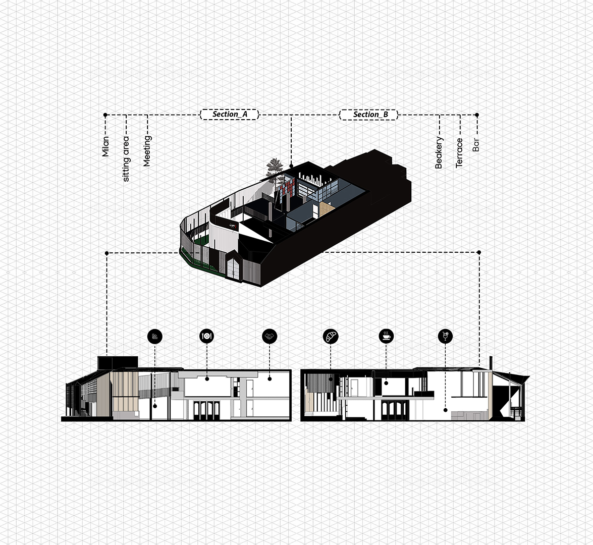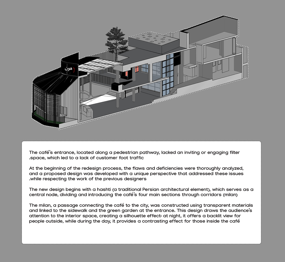نام پروژه: میلان[۱] | فضای بینابینی[۲] (کافه رستوران هِون[۳])