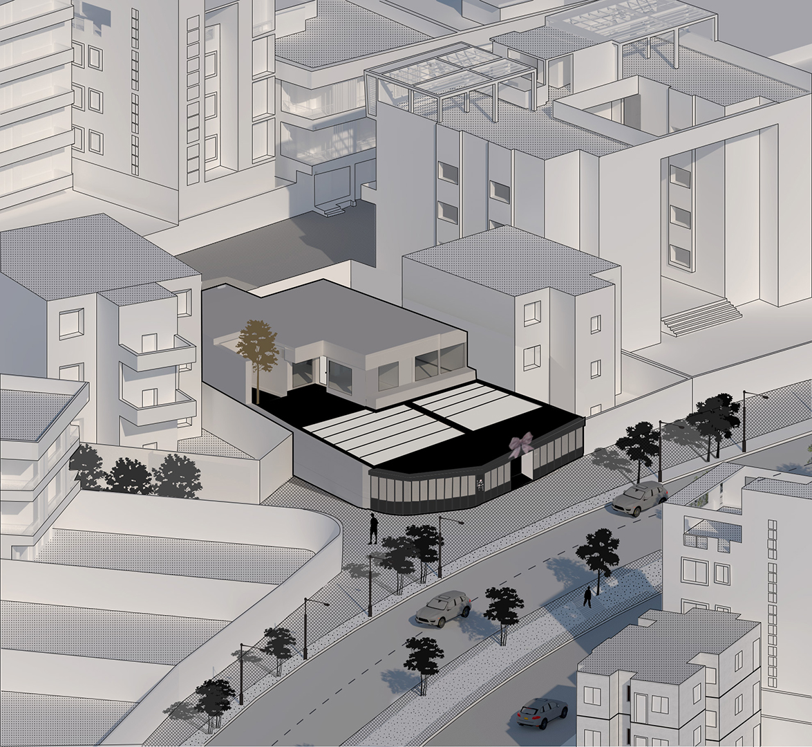 این پروژه در امتداد محور پررفتوآمد بلوار سجاد و بر روی قطعهای ذوزنقهایشکل واقع شده است؛ سایتی که پیشتر کاربری کافه–رستوران داشت. این موقعیت شهری، با کریدور بصری خطی در امتداد بلوار، فرصتی برای خلق یک نقطه شاخص شهری و چالشی برای بازتعریف فضایی محدود و چندسطحی فراهم میکرد.